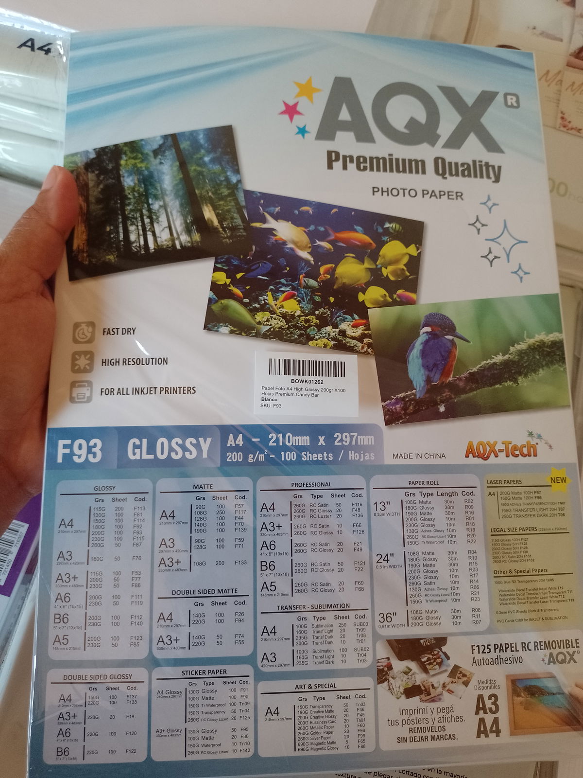 Papel fotográfico brillante A4 200gr AQX